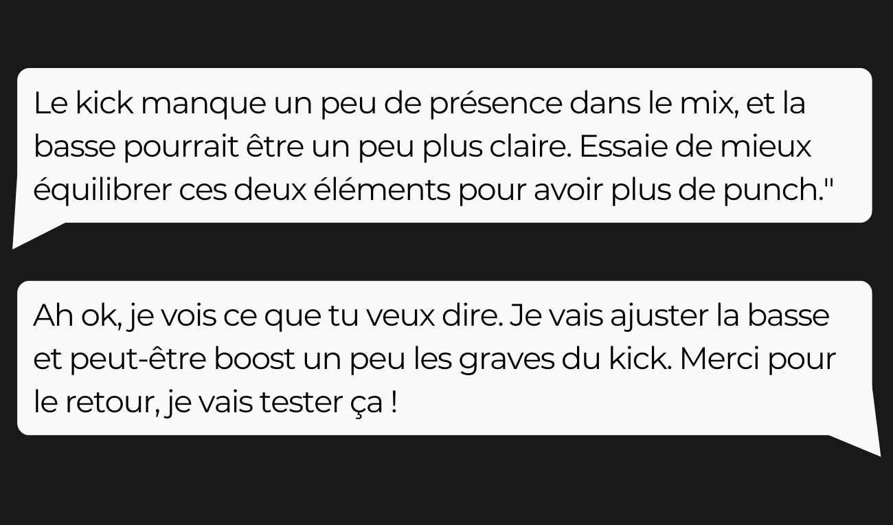 Partages tes prods et reçois des retours précis et constructifs pour progresser rapidement sans rester bloqué seul.